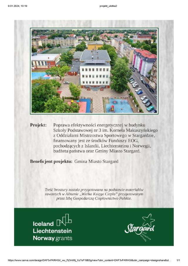 Zobacz film ukazujący założenia i etapy realizacji projektu “Poprawa efektywności energetycznej w budynku Szkoły Podstawowej nr 3 im. Kornela Makuszyńskiego z Oddziałami Mistrzostwa Sportowego w Stargardzie”.
