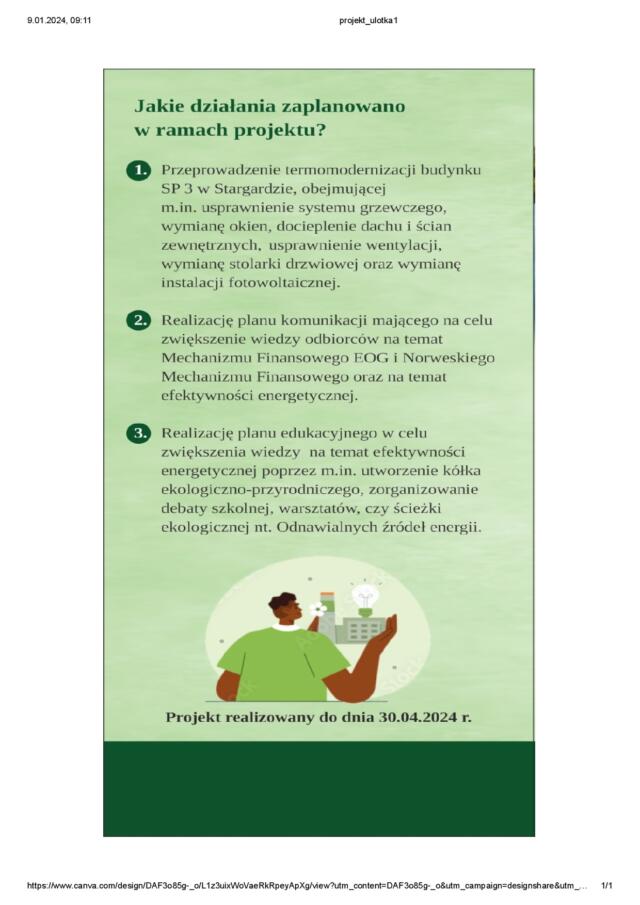 Szczegółowy opis termomodernizacji szkoły na stronie Urzędu Miasta Stargard.
