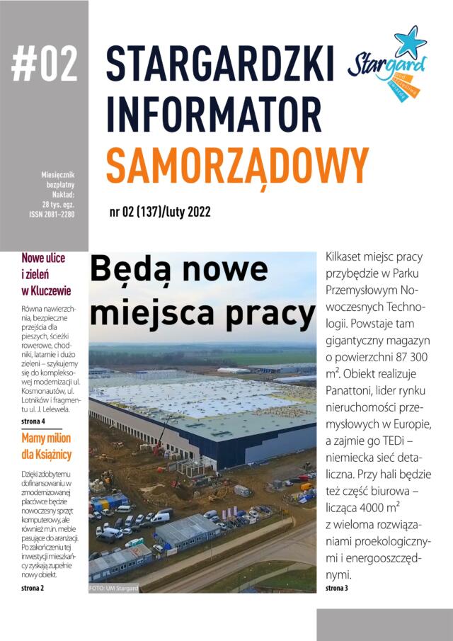 Budowa nowoczesnego magazynu o powierzchni 87 300 m2, prawie 1 000 000 zł dofinansowania na wyposażenie Książnicy Stargardzkiej, dyskusja o przebudowie kilku ulic w Kluczewie – lutowe wydanie „Stargardzkiego Informatora Samorządowego” wypełniają różne inwestycje. Oprócz tego można obejrzeć galerię z 30. finału Wielkiej Orkiestry Świątecznej Pomocy oraz sprawdzić jak najmłodsi stargardzianie spędzili zimowe ferie w mieście.