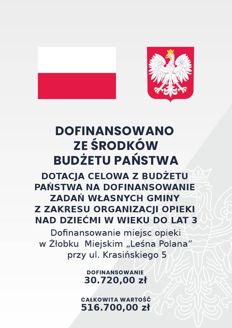 Dotyczy dofinansowania miejsc opieki w Żłobku Miejskim „Leśna Polana” przy ul. Krasińskiego 5.